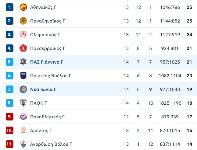 H βαθμολογία της Α1 μπάσκετ Γυναικών