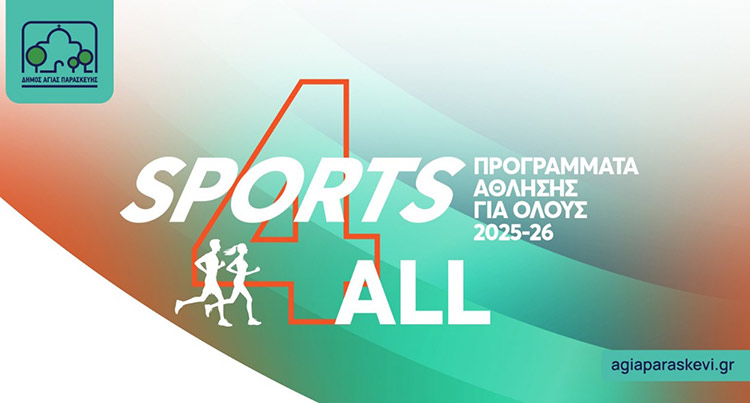 Ξεκινούν τη Δευτέρα 15 Σεπτεμβρίου τα «Sports 4 All – Προγράμματα Άθλησης για Όλους» του Δήμου Αγίας Παρασκευής,  ανανεωμένα και εμπλουτισμένα, με στόχο να καλύψουν ένα ευρύ φάσμα αθλημάτων για όλες τις ηλικίες και να ανταποκρίνονται στις ανάγκες και τα αιτήματα των κατοίκων, όπως αναφέρει η δημοτική αρχή.