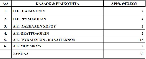 Στο πλαίσιο του έργου αυτού θα απασχοληθούν τριάντα (30) άτοµα µε ειδικότητες όπως αναγράφονται στον παρακάτω πίνακα και για χρονικό διάστηµα από την έναρξη της σύµβασης έως 31/7/2020.