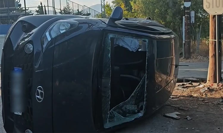 Τροχαίο με σύγκρουση δύο Ι.Χ. και ανατροπή οχήματος στην Κηφισιά