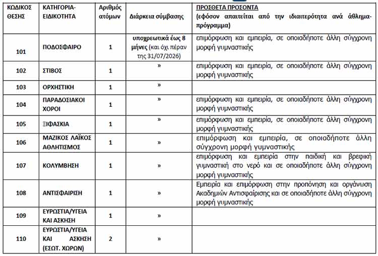 Στην πρόσληψη 11 ατόμων πτυχιούχων Φυσικής Αγωγής, με σύμβαση εργασίας ιδιωτικού δικαίου ορισμένου χρόνου (ΙΔΟΧ), χρονικής διάρκειας έως οκτώ μήνες, με ωριαία αποζημίωση, για την υλοποίηση των προγραμμάτων «Άθλησης για Όλους» περιόδου 2025 – 2026 προχωρά ο Δήμος Παπάγου – Χολαργού.