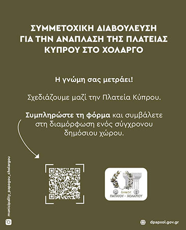 Συμμετοχική Διαβούλευση για την ανάπλαση της πλατείας Κύπρου στον Χολαργό